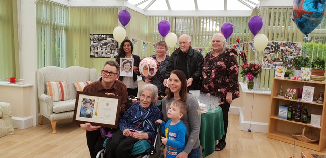 Her day was made special with a party at the care home attended by her family, including her 3 years old grandson.